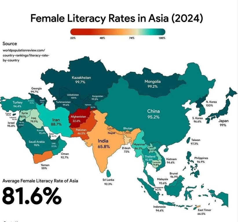 ホーム > ニュースetc > 外国人「アジア女性の識字率は81.6%」「日本の99%は凄いな」 2024/12/08 スレッド「2024年のアジアの女性の識字率」より。引用:Reddit (海外の反応) 1万国アノニマスさん 2024年のアジアの女性の識字率 2万国アノニマスさん もし日本の数字が本当なら本当に凄い日本語は凄く複雑だからね 3万国アノニマスさん 北朝鮮の100%で笑ってしまった🤣 続きを読む Source: 海外の万国反応記 - ニュースetc