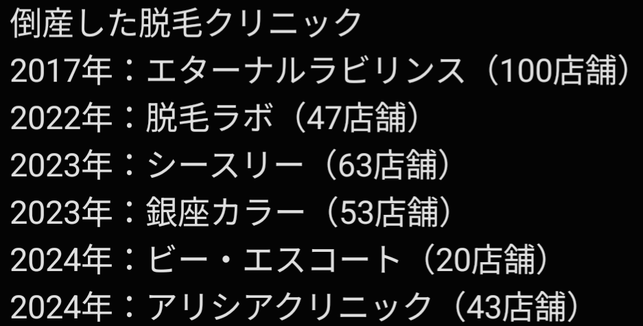 ホーム > ニュースetc > 【悲報】脱毛クリニック、倒産祭りwwwwwwwwwwwwwww 2024/12/16 1: 以下、?ちゃんねるからVIPがお送りします 2024/12/11(水) 20:30:06.139 ID:fdhNdKyE0.net 広告費かけすぎて共倒れする模様 続きを読む Source: 妹はVIPPER - ニュースetc