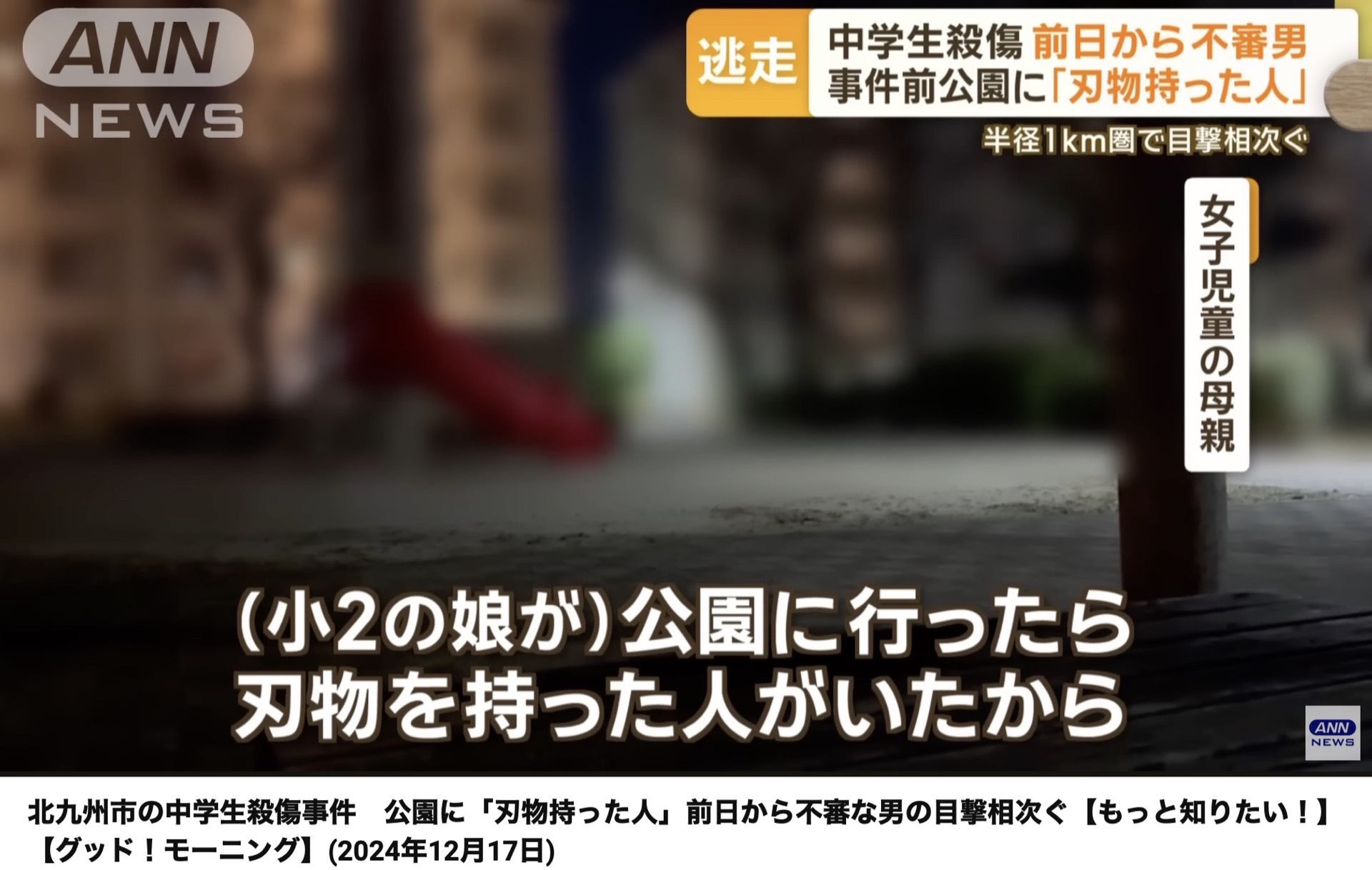 中学生2人死傷事件 近くの公園で不審な男女…ベンチに包丁 目撃情報相次ぐ 広がる不安に厳戒態勢 福岡・北九州市■公園に不審な男女の姿 ベンチには包丁が