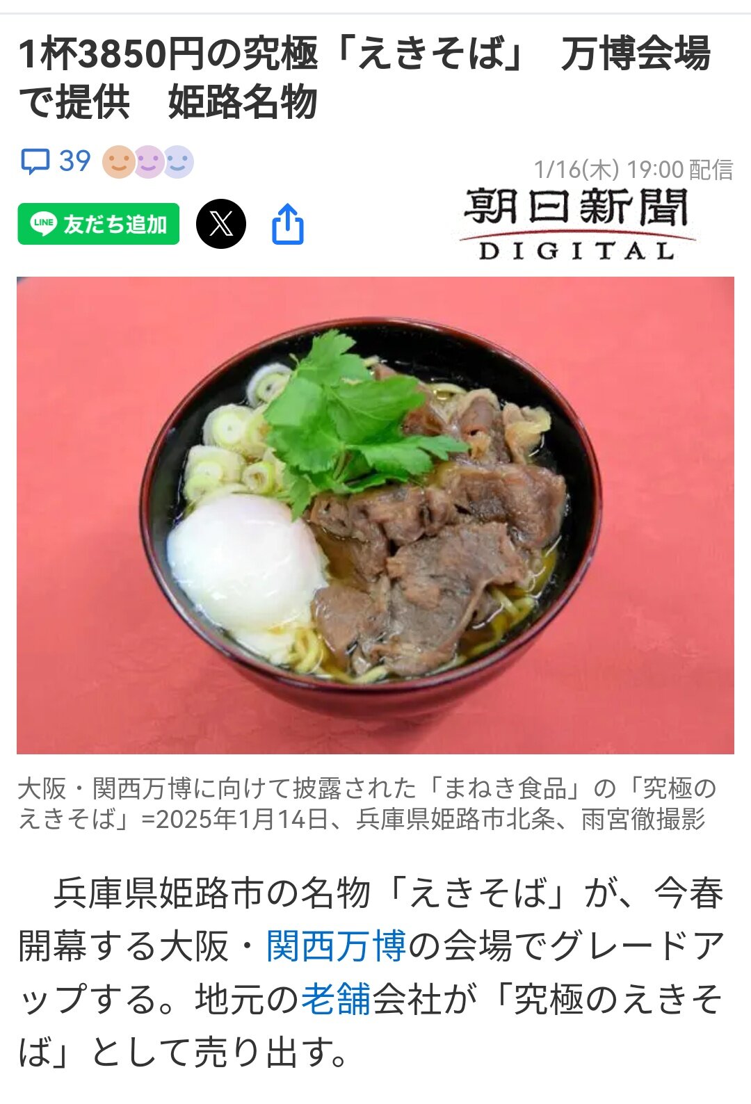ホーム > ニュースetc > 【朗報】万博の究極の駅そば、1杯3850円😄 2025/01/21 1: それでも動く名無し 2025/01/18(土) 06:08:00.94 ID:eMJpjpLWM.net これは美味そう 3: それでも動く名無し 2025/01/18(土) 06:08:44.23 ID:lADnCGahr.net 中抜きそばか 続きを読む Source: 妹はVIPPER - ニュースetc